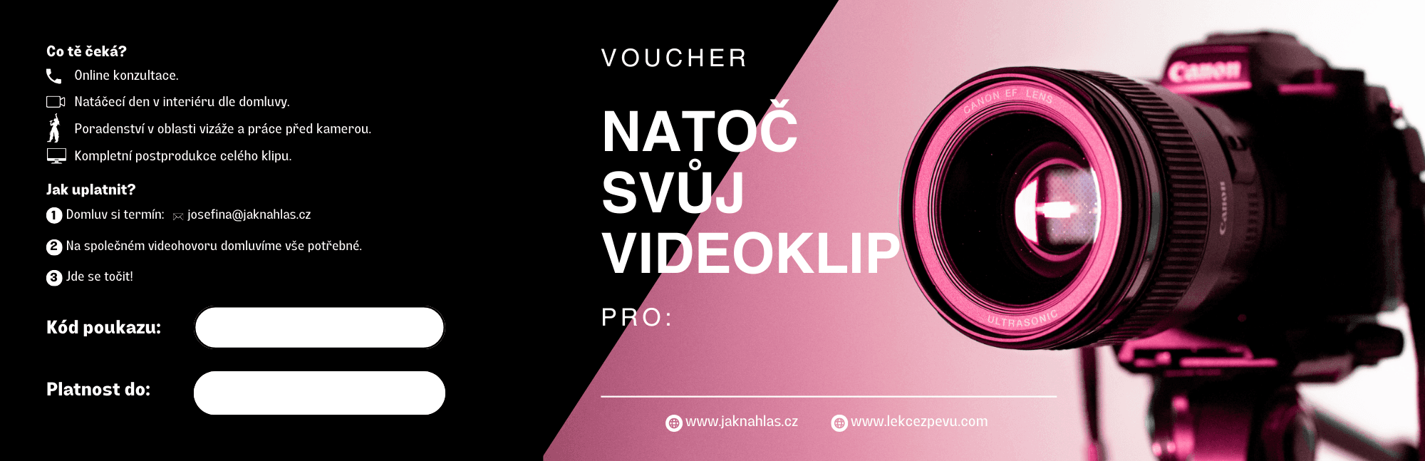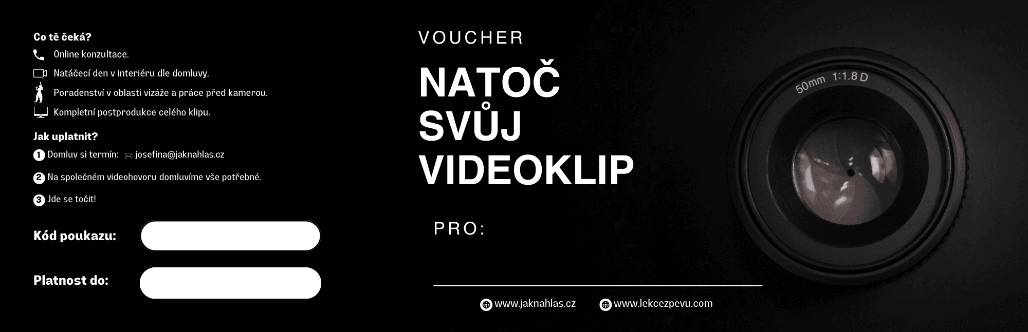 Daruj radost z hudby! Dárkové poukazy jsou perfektním překvapením pro kamaráda, mamku i spolužačku. Chceš pomoct svému blízkému, aby se zbavil strachu ze zpívání na veřejnosti a někam se posunul? Vyber mu voucher na jakoukoli moji službu - individuální lekci, zpívání ve skupině nebo balíček dle konkrétních potřeb.